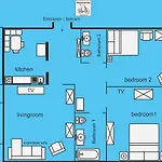 Διαμέρισμα των 80 τ. Μ. Διαθέτει προσωπική θυρίδα ασφαλείας, καναπέ και παροχές τσάι/καφέ σε κάθε δωμάτιο. Υπάρχουν 2 υπνοδωμάτια με πουπουλένια μαξιλάρια και γεμάτα μαξιλάρια. Για την άνεση σας σάς παρέχουν ξεχωριστή τουαλέτα και ντους σε κάθε μπάνιο.